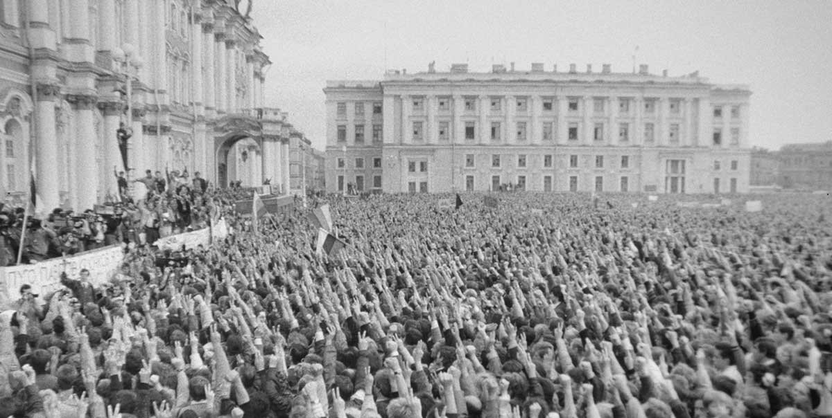 Četudi je režiser le kronološko zlepil med seboj delčke gradiva, ki so dolgih petindvajset let neuporabljeni ležali v kleteh peterburškega filmskega inštituta, je to storil tako, da je na popotovanje skozi tridnevne demonstracije na ulicah Sankt Peterburga popeljal tudi gledalca. Kamera se prikrade v samo središče dogajanja; ne zanimajo jo govorniški odri, ampak množica ljudi, ki zmedeno, tesnobno, prestrašeno, nekateri tudi polni upanja, begajo po trgu pred Zimskim dvorcem, se prerivajo za letaki, prislanjajo ušesa k malim prenosnim radijem – vse, da bi razumeli, kaj se sploh dogaja, da bi prišli do kakšne informacije. Enako zmedeni smo tudi gledalci, ki nam takratno dogajanje ni povsem znano in razumljivo – gledamo bližnje plane začudenih, presenečenih obrazov polnih vprašanj, za katere se zdi kot bi jih režiser sam postavil pred kamero, in se izgubljamo v kakofoniji anonimnih zvokov z ulice, ki jih vsake toliko prekinejo zaneseni govori ali vzkliki sloganov. Kljub temu, da smo nekako vpeti v dogajanje, pa nam oddaljenost od tistega časa vseeno omogoči distanco nujno za objektivno presojo.